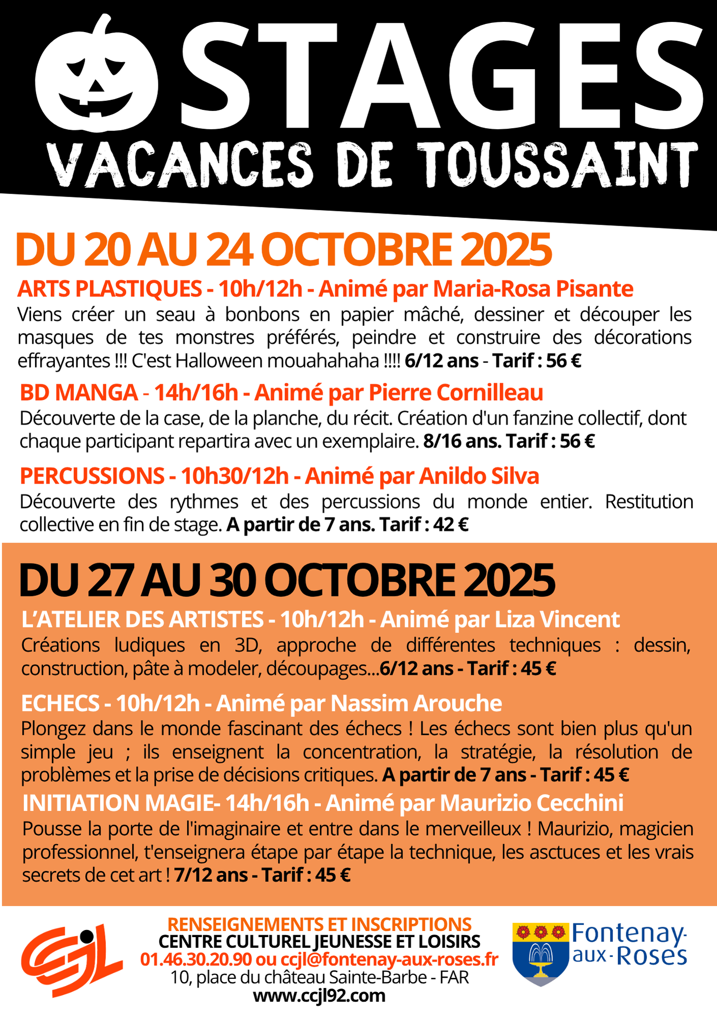 Vendredi 31 octobre : 16h-19h